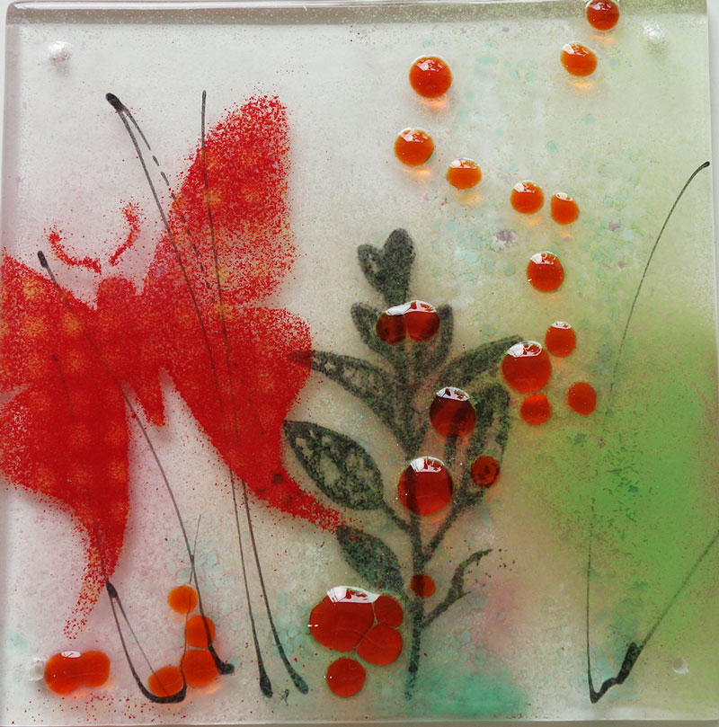 Glastafel, 10x10cm, 4mm stark, 4 Löcher gebohrt