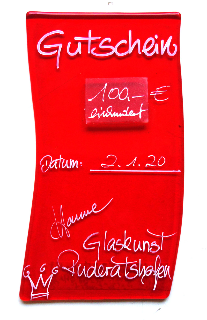 Gutschein aus Glas, Größe ca 12x9cm,Farben je nach Vorrat