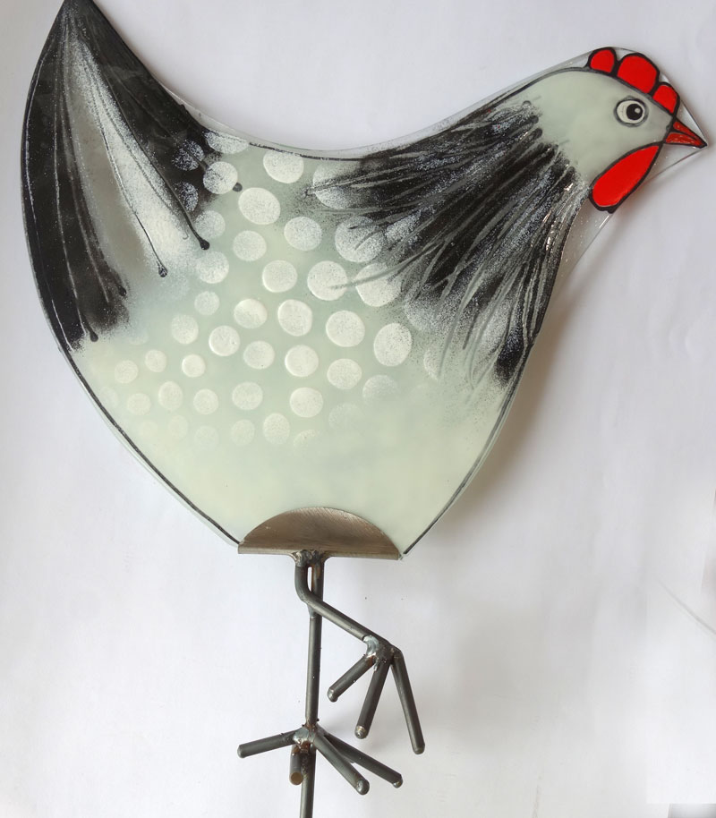 Glas  5mm, einlagig ,  steht auf Eisenfüßen, mit Erdspieß für den Garten oder den Blumentopf