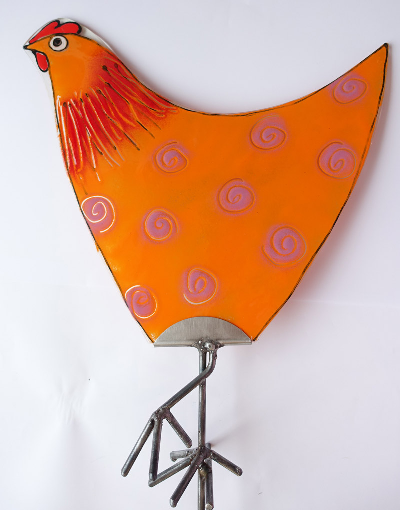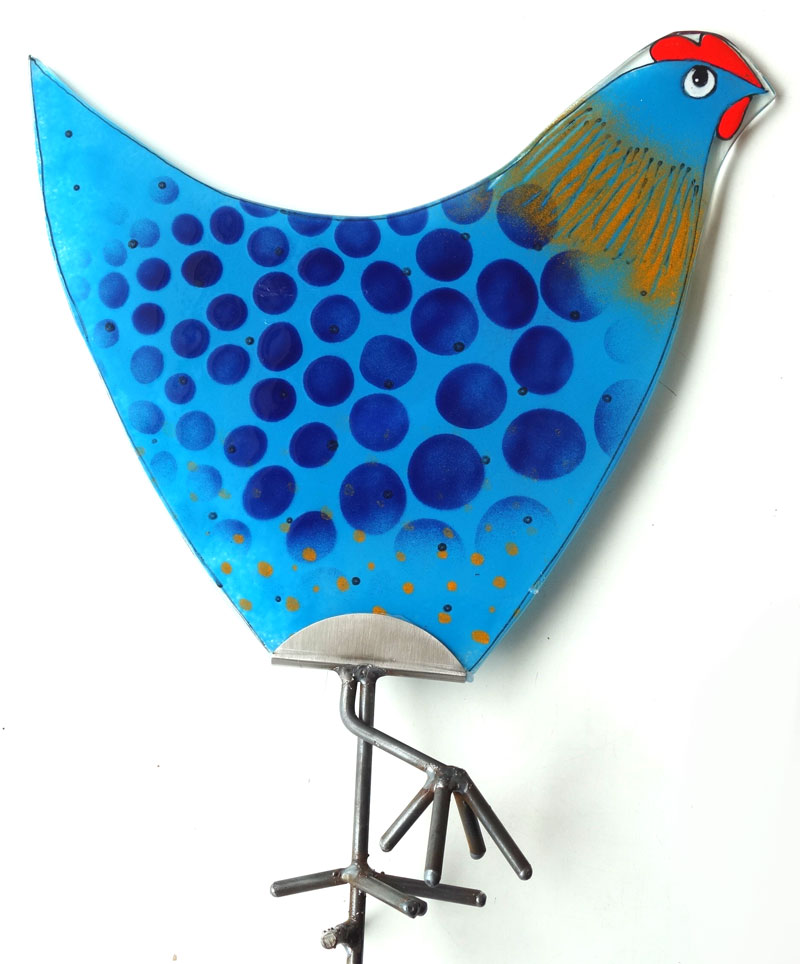 Glas  5mm, einlagig ,  steht auf Eisenfüßen, mit Erdspieß für den Garten oder den Blumentopf