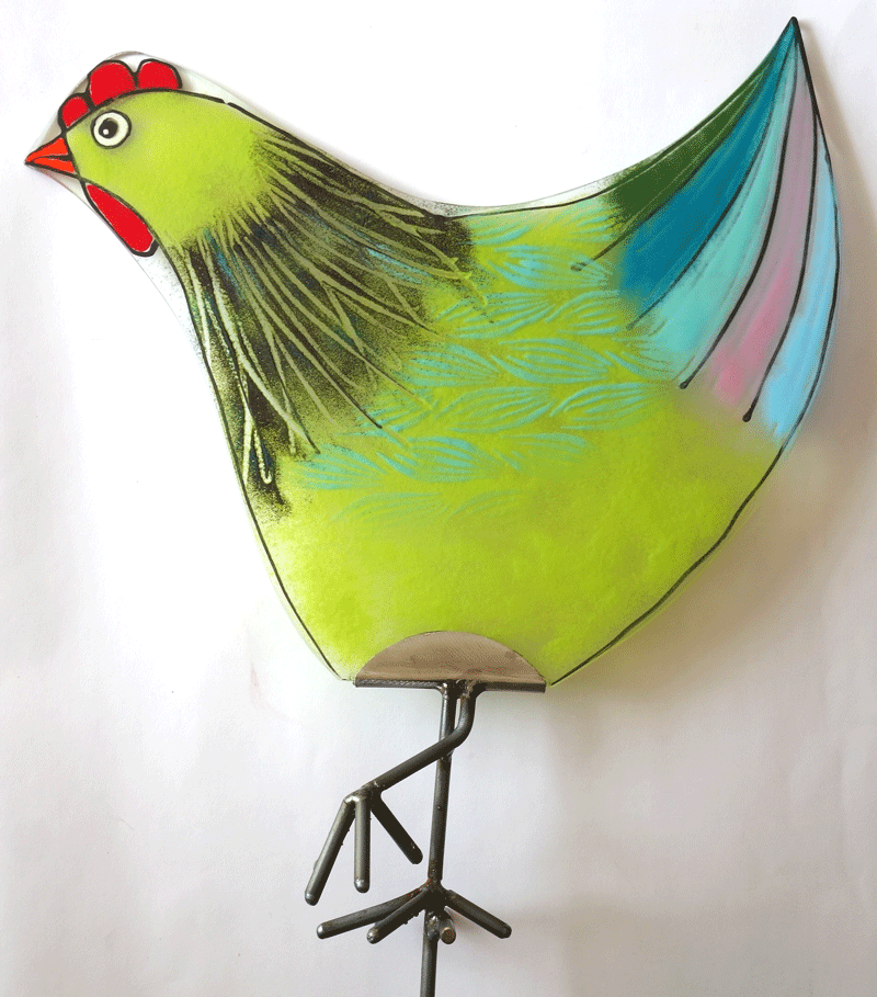 Glas  5mm, einlagig ,  steht auf Eisenfüßen, mit Erdspieß für den Garten oder den Blumentopf