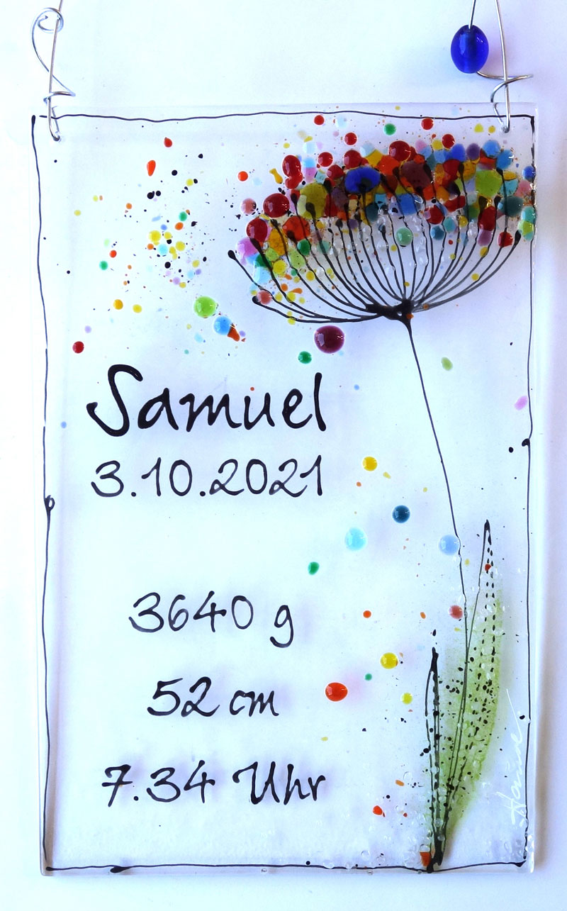 Das Geburtenschild ist einlagig, 4mm stark und mit einer Drahtaufhängung mit farblich passender Perle bestückt.
