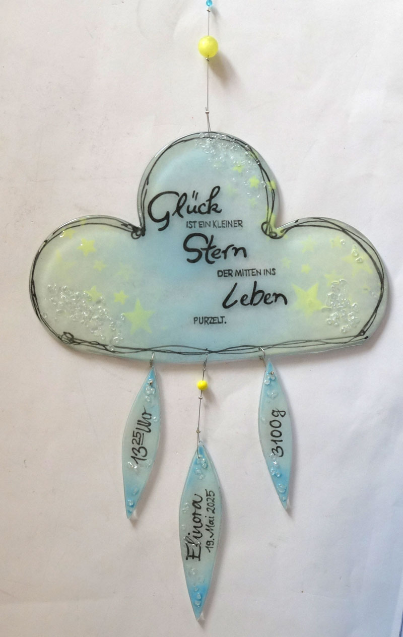 Wolke 25x16cm, mit Hängern 34cm, Stahlseil +ca30cm
