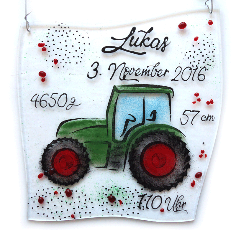 Das Geburtenschild ist einlagig, 4mm stark und mit einer Drahtaufhängung mit farblich passender Perle bestückt.