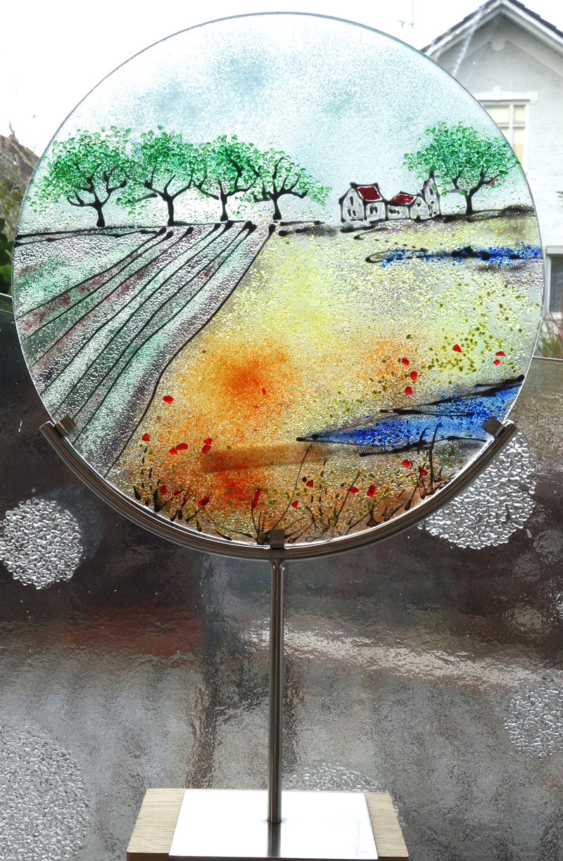 Glasbild in Kröseltechnik D30cm, erhabenes Glas