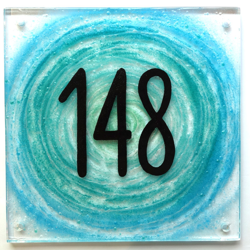 Die Hausnummer ist zweilagig und hat eine Glasstärke von ca. 8mm. Es sind 4 Bohrungen a' 6mm zur Befestigung vorhanden.