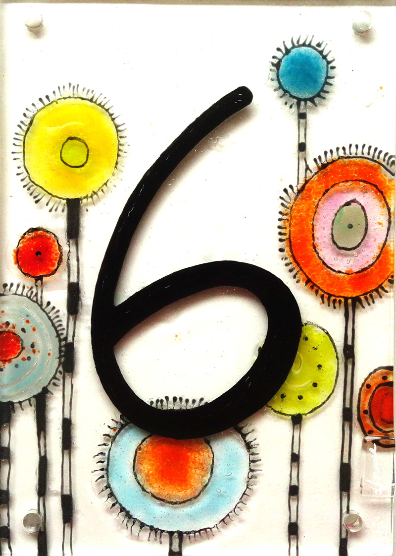 Die Hausnummer ist zweilagig und hat eine Glasstärke von ca. 8mm. Es sind 4 Bohrungen a' 6mm zur Befestigung vorhanden.