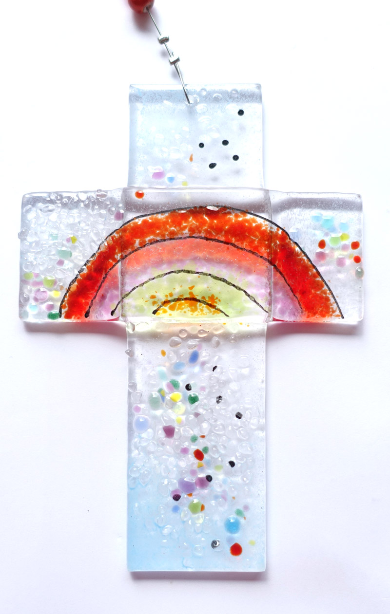 Kleines Kreuz, einlagig mit Edelstahlband und Perle