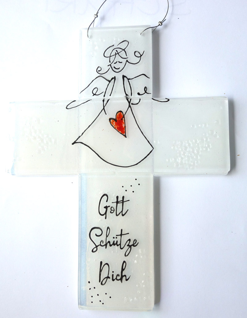 Das Kreuz ist  doppellagig  8mm stark, Aufhängung : Edelstahlband