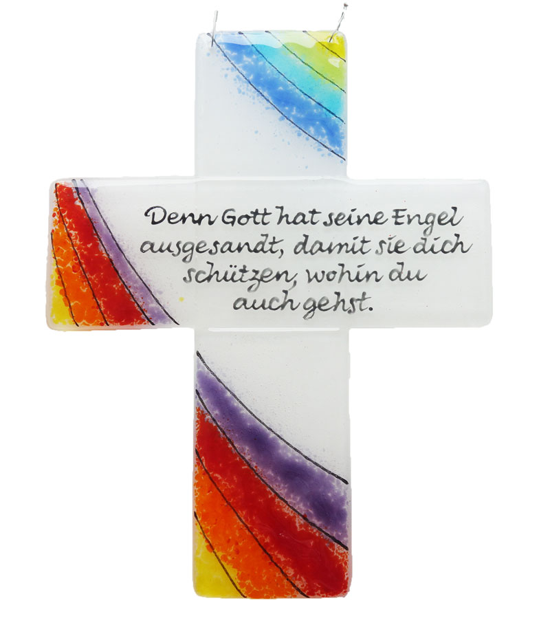 Die Größe vom Kreuz ist17x14cm , Glasstärke ca 7mm . Für die Aufhängung wird ein Draht mit passender Perle angebracht.