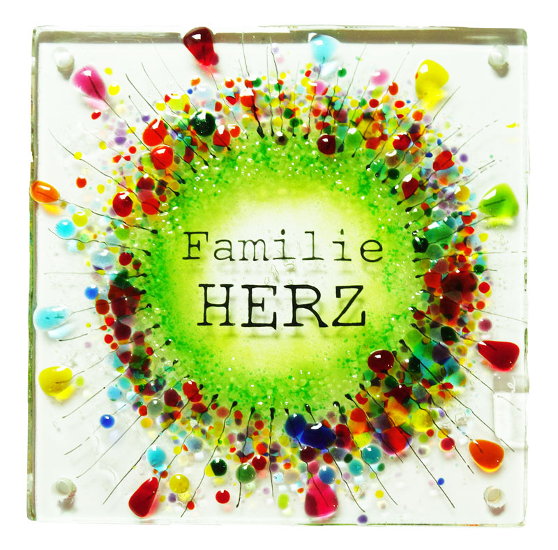 Das Namenschild ist zweilagig und hat eine Glasstärke von ca. 8mm. Es sind vier Bohrungen á 6 mm zur Befestigung vorhanden.