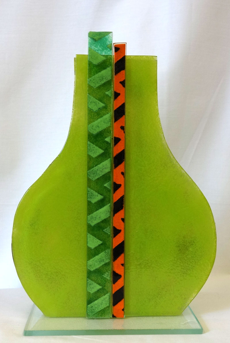 WendeVase,  ohne Blumen ,grün - zweiseitig verwendbar, vorne mit Muster
