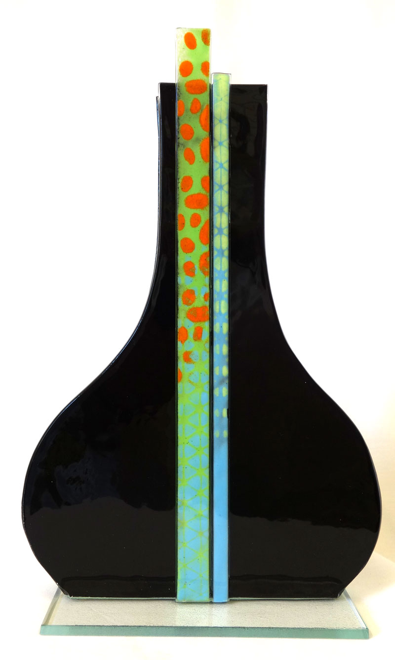 WendeVase,  ohne Blumen ,schwarz - zweiseitig verwendbar, vorne mit Muster