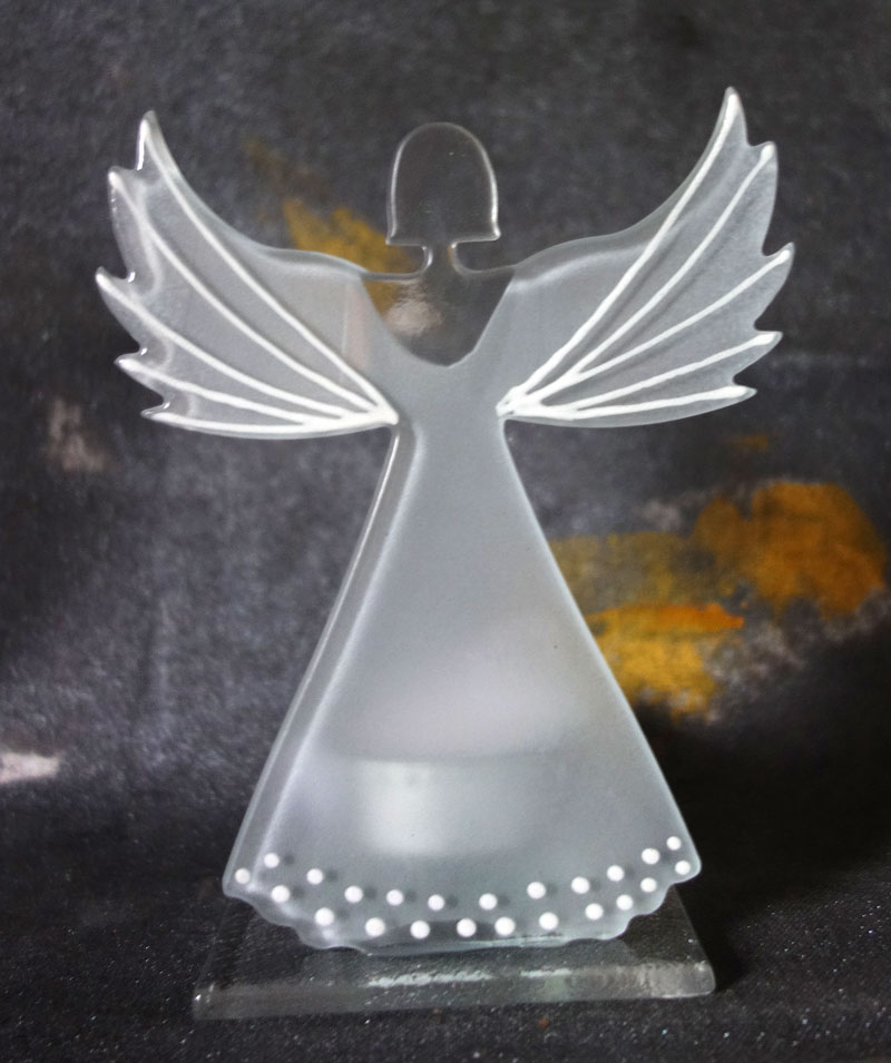 Teelicht" Engel" aus mattiertem Glas, bemalt, 9 x 11 cm mit Teelichthalter
